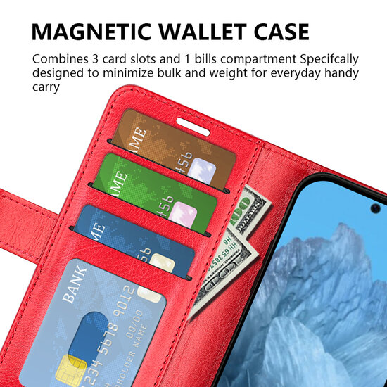 Bescherm je Google Pixel 9 of Google Pixel 9 Pro in stijl met de Mobydefend Wallet Bookcase. Dit hoesje is gemaakt van hoogwaardig kunstleer aan de buitenkant en een stevige houder van flexibel kunststof aan de binnenkant, waarin je de telefoon eenvoudig vastklikt. Deze combinatie van kwalitatieve materialen garandeert uitstekende bescherming voor je toestel.