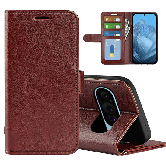 Variant: Google Pixel 9 / Pixel 9 Pro Hoesje - MobyDefend Wallet Book Case (Sluiting Achterkant) - Bruin