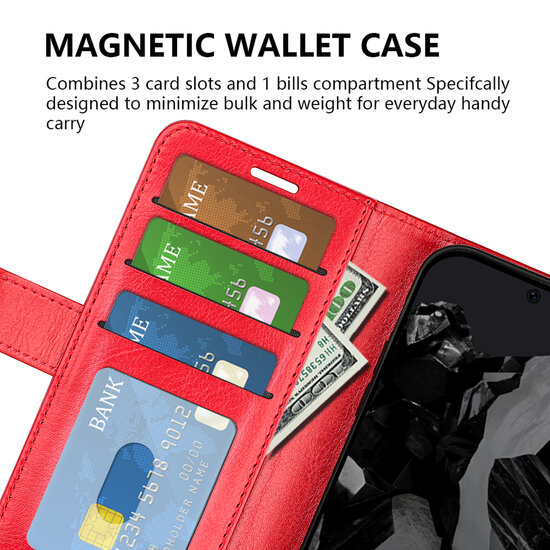 Bescherm je Google Pixel 9 Pro XL in stijl met de Mobydefend Wallet Bookcase. Dit hoesje is gemaakt van hoogwaardig kunstleer aan de buitenkant en een stevige houder van flexibel kunststof aan de binnenkant, waarin je de telefoon eenvoudig vastklikt. Deze combinatie van kwalitatieve materialen garandeert uitstekende bescherming voor je toestel.