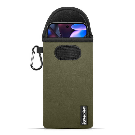 Variant: Hoesje voor Google Pixel 9 Pro XL - MobyDefend Neopreen Pouch Met Karabijnhaak - Insteekhoesje - Riemlus Hoesje - Groen