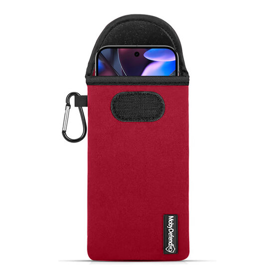 Variant: Hoesje voor Google Pixel 9 Pro XL - MobyDefend Neopreen Pouch Met Karabijnhaak - Insteekhoesje - Riemlus Hoesje - Rood
