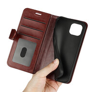 Variant: iPhone 14 Hoesje - MobyDefend Wallet Book Case (Sluiting Achterkant) - Bruin