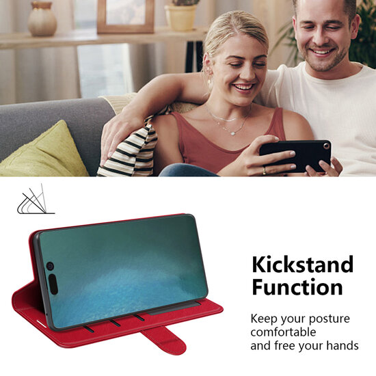 Standaardfunctie: Dit veelzijdige hoesje kan ook dienen als een handige standaard. Door de telefoon horizontaal te houden en het hoesje schuin naar voren te klappen kun je de telefoon rechtop neerzetten. Zo geniet je handsfree van films, video's of videochats.