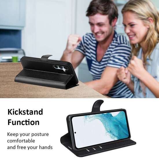 Standaardfunctie: Dit veelzijdige hoesje kan ook dienen als een handige standaard. Door de telefoon horizontaal te houden en het hoesje schuin naar voren te klappen kun je de telefoon rechtop neerzetten. Zo geniet je handsfree van films, video's of videochats.