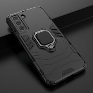 Variant: Samsung Galaxy S21 FE Hoesje - MobyDefend Dubbelgelaagde Pantsercase Met Standaard - Zwart