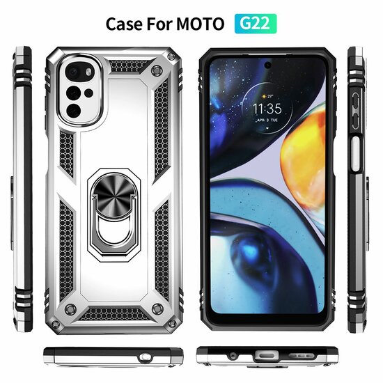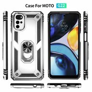 Variant: Motorola Moto G22 Hoesje - MobyDefend Pantsercase Met Draaibare Ring - Zilvergrijs