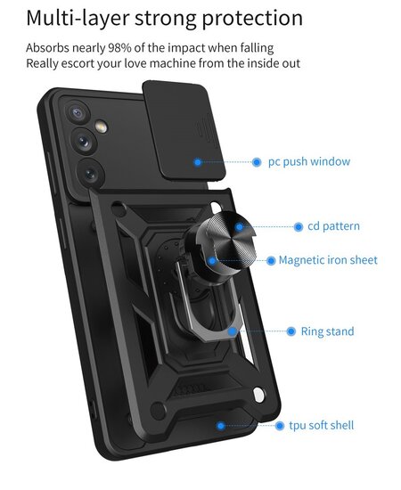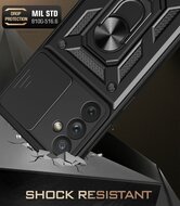 Optimale bescherming: De MobyDefend Pantsercase is vervaardigd uit een combinatie van stevig flexibel kunststof aan de binnenkant en hard kunststof aan de buitenkant. Deze combinatie zorgt voor een uitstekende schokabsorptie en bescherming tegen vallen, stoten en krassen. Daarnaast is er een handig schuifje waarmee je de camera aan de achterkant van je telefoon kunt afdekken, zodat je toestel optimaal beschermd blijft.