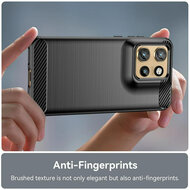 Stijlvol design: Het geborstelde metaal- en carbon-look design van de MobyDefend TPU Backcover geeft je telefoon een stoere en moderne uitstraling. Dit hoesje biedt niet alleen uitstekende bescherming, maar ook een unieke en elegante look waar je trots op kunt zijn.
