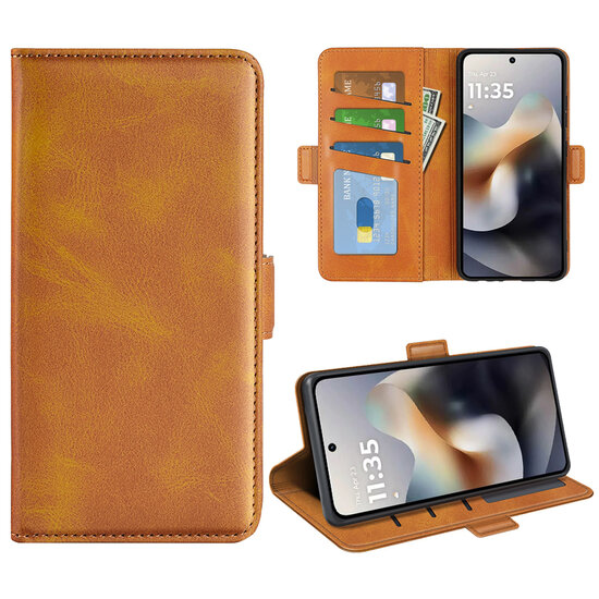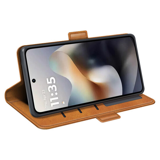 Variant: Motorola Moto G56 Hoesje - MobyDefend Luxe Wallet Book Case (Sluiting Zijkant) - Lichtbruin