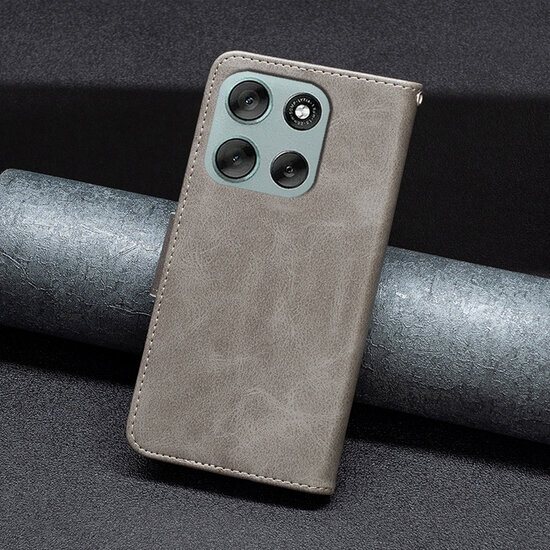 Variant: Motorola Moto G56 Hoesje - MobyDefend Wallet Book Case Met Koord - Grijs