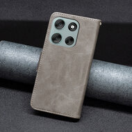 Motorola Moto G56 Hoesje - MobyDefend Wallet Book Case Met Koord - Grijs