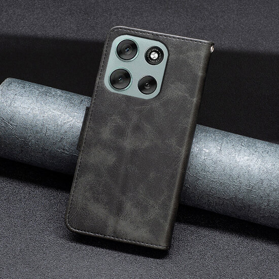 Motorola Moto G56 Hoesje - MobyDefend Wallet Book Case Met Koord - Zwart