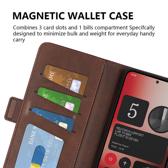 Bescherm je Nothing Phone (2a) of Nothing Phone (2a) Plus in stijl met de MobyDefend Luxe Wallet Book Case. Dit hoesje is gemaakt van topkwaliteit kunstleer aan de buitenkant en een stevige houder van flexibel kunststof aan de binnenkant, waarin je de telefoon eenvoudig vastklikt. Deze combinatie van materialen garandeert niet alleen een uitstekende bescherming voor je toestel en een stijlvolle look, maar verzekert ook een duurzaam hoesje dat lang meegaat.