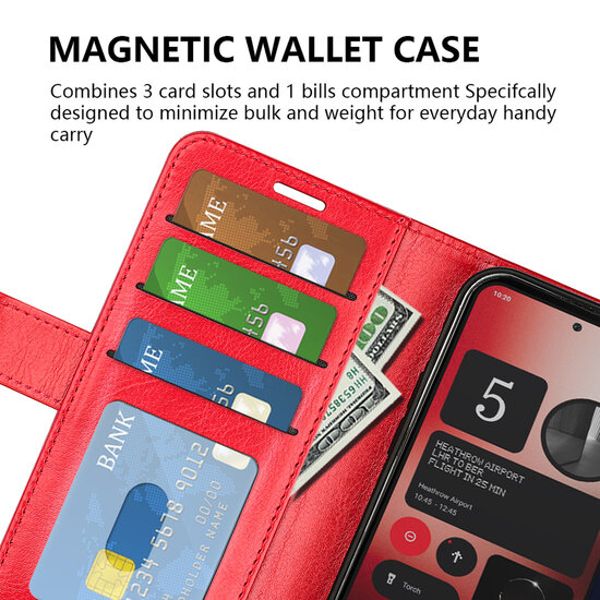 Bescherm je Nothing Phone (2a) of Nothing Phone (2a) Plus in stijl met de Mobydefend Wallet Bookcase. Dit hoesje is gemaakt van hoogwaardig kunstleer aan de buitenkant en een stevige houder van flexibel kunststof aan de binnenkant, waarin je de telefoon eenvoudig vastklikt. Deze combinatie van kwalitatieve materialen garandeert uitstekende bescherming voor je toestel.