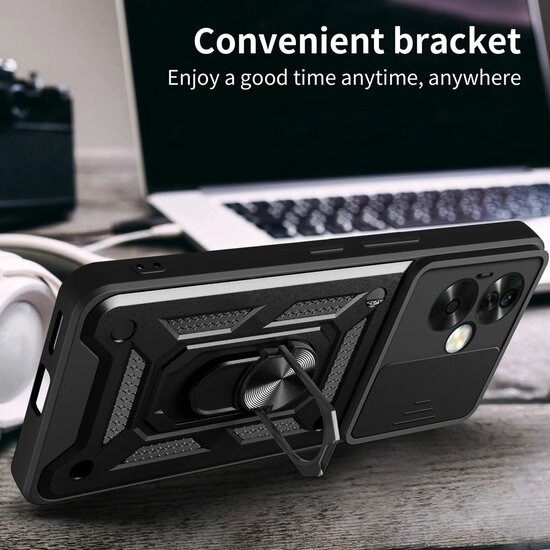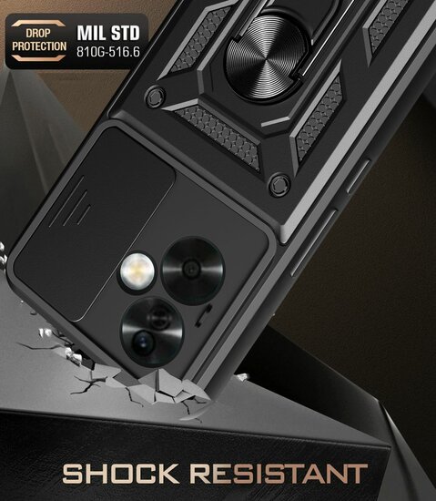 Ben je op zoek naar een hoesje dat niet alleen optimale bescherming biedt voor je Oppo A79 of OnePlus Nord N30 SE, maar ook een stijlvolle uitstraling heeft? Dan is de MobyDefend Pantsercase Met Draaibare Ring precies wat je nodig hebt!