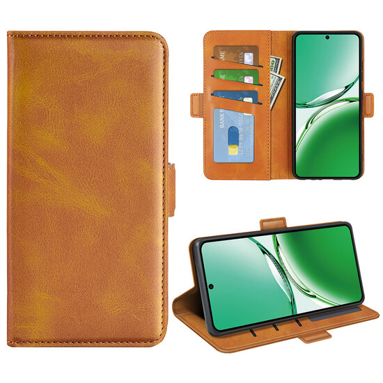 Variant: Oppo Reno12 F Hoesje - MobyDefend Luxe Wallet Book Case (Sluiting Zijkant) - Lichtbruin