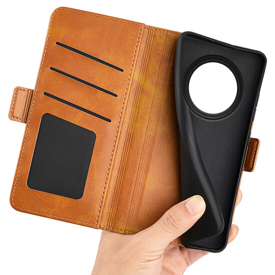 Oppo Reno12 F Hoesje - MobyDefend Luxe Wallet Book Case (Sluiting Zijkant) - Lichtbruin