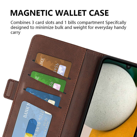 Standaardfunctie: Dit veelzijdige hoesje kan ook dienen als een handige standaard. Door de telefoon horizontaal te houden en het hoesje schuin naar voren te klappen, kun je de telefoon rechtop neerzetten. Zo geniet je handsfree van films, video's of videochats.