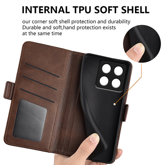 Bescherm je Samsung Galaxy A16 in stijl met de MobyDefend Luxe Wallet Book Case. Dit hoesje is gemaakt van topkwaliteit kunstleer aan de buitenkant en een stevige houder van flexibel kunststof aan de binnenkant, waarin je de telefoon eenvoudig vastklikt. Deze combinatie van materialen garandeert niet alleen een uitstekende bescherming voor je toestel en een stijlvolle look, maar verzekert ook een duurzaam hoesje dat lang meegaat.