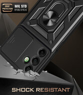 Optimale bescherming: De MobyDefend Pantsercase is vervaardigd uit een combinatie van stevig flexibel kunststof aan de binnenkant en hard kunststof aan de buitenkant. Deze combinatie zorgt voor een uitstekende schokabsorptie en bescherming tegen vallen, stoten en krassen. Daarnaast is er een handig schuifje waarmee je de camera aan de achterkant van je telefoon kunt afdekken, zodat je toestel optimaal beschermd blijft.