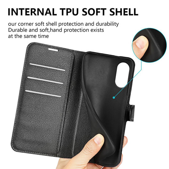 Bescherm je Sony Xperia 10 VI in stijl met de Mobydefend Wallet Bookcase. Dit hoesje is gemaakt van hoogwaardig kunstleer aan de buitenkant en een stevige houder van flexibel kunststof aan de binnenkant, waarin je de telefoon eenvoudig vastklikt. Deze combinatie van kwalitatieve materialen garandeert uitstekende bescherming voor je toestel.