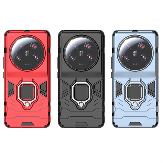 Variant: Xiaomi 13 Ultra Hoesje - MobyDefend Dubbelgelaagde Pantsercase Met Standaard - Blauw