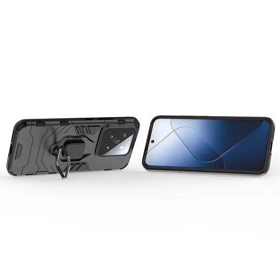 Variant: Xiaomi 14 Hoesje - MobyDefend Dubbelgelaagde Pantsercase Met Standaard - Blauw