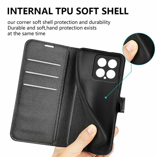 Bescherm je Xiaomi 14 in stijl met de Mobydefend Wallet Bookcase. Dit hoesje is gemaakt van hoogwaardig kunstleer aan de buitenkant en een stevige houder van flexibel kunststof aan de binnenkant, waarin je de telefoon eenvoudig vastklikt. Deze combinatie van kwalitatieve materialen garandeert uitstekende bescherming voor je toestel.