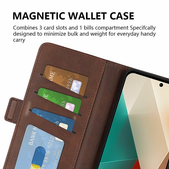 Bescherm je Xiaomi Redmi Note 13 5G in stijl met de MobyDefend Luxe Wallet Book Case. Dit hoesje is gemaakt van topkwaliteit kunstleer aan de buitenkant en een stevige houder van flexibel kunststof aan de binnenkant, waarin je de telefoon eenvoudig vastklikt. Deze combinatie van materialen garandeert niet alleen een uitstekende bescherming voor je toestel en een stijlvolle look, maar verzekert ook een duurzaam hoesje dat lang meegaat.