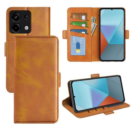 Xiaomi Redmi Note 13 Pro 5G Hoesje - MobyDefend Luxe Wallet Book Case (Sluiting Zijkant) - Lichtbruin