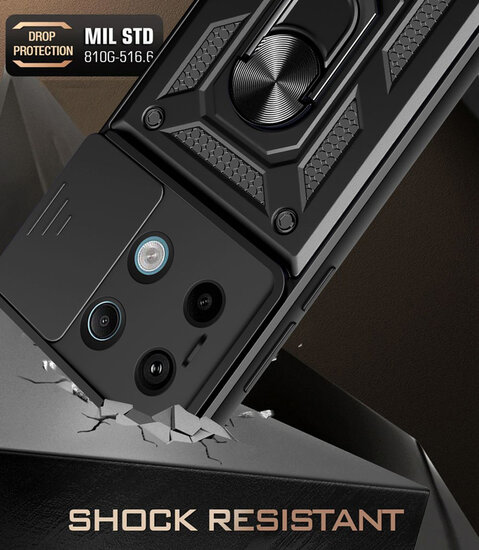 Variant: Xiaomi Redmi Note 13 Pro 5G Hoesje - MobyDefend Pantsercase Met Draaibare Ring - Zwart