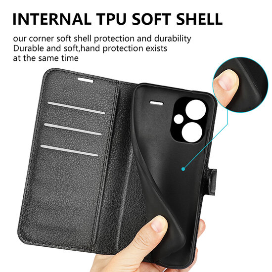 Bescherm je Xiaomi Redmi Note 13 Pro Plus in stijl met de Mobydefend Wallet Bookcase. Dit hoesje is gemaakt van hoogwaardig kunstleer aan de buitenkant en een stevige houder van flexibel kunststof aan de binnenkant, waarin je de telefoon eenvoudig vastklikt. Deze combinatie van kwalitatieve materialen garandeert uitstekende bescherming voor je toestel.