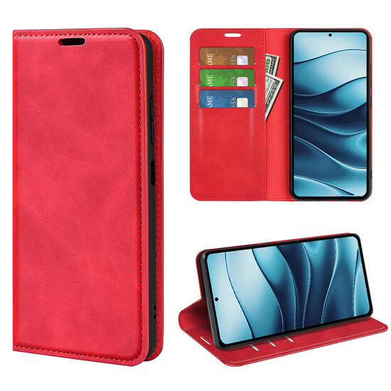 Xiaomi Redmi Note 14 5G Hoesje - MobyDefend Luxe Wallet Bookcase (Magnetische Sluiting) - Rood