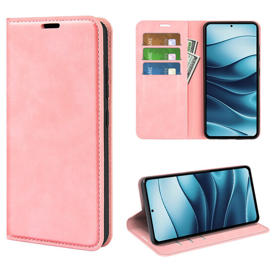 Xiaomi Redmi Note 14 5G Hoesje - MobyDefend Luxe Wallet Bookcase (Magnetische Sluiting) - Roze