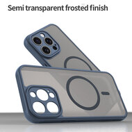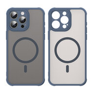 Variant: iPhone 15 Pro Max Hoesje - MobyDefend MagSafe Case Mat Transparant Met Gekleurde Rand - Blauw