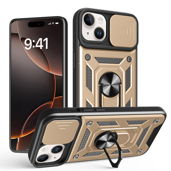 Variant: iPhone 16e Hoesje - MobyDefend Pantsercase Met Draaibare Ring - Goud