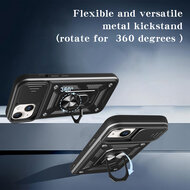Handige functies: Dit hoesje beschikt over een uitklapbare ring die 360 graden draaibaar is, waardoor je je telefoon zowel horizontaal als verticaal kunt neerzetten. Dit biedt extra gebruiksgemak bij het kijken van video's of tijdens videogesprekken. Bovendien kan de draaibare ring ook gebruikt worden om je telefoon stevig vast te houden wat extra grip en veiligheid biedt tijdens het gebruik.